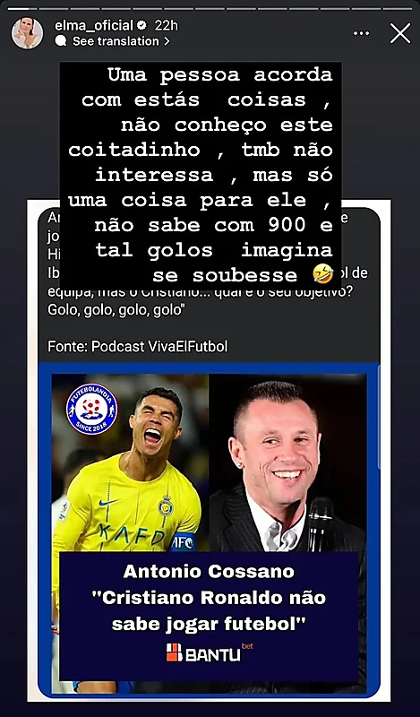 رد شقيقة رونالدو، نجم نادي النصر، على التصريحات الأخيرة لأنطونيو كاسانو، لاعب ريال مدريد وروما وميلان وإنتر السابق، والتي تتعلق بـ"الدون" .